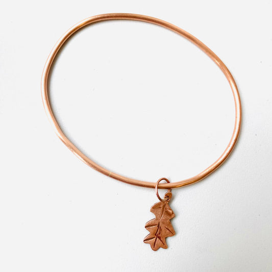 Copper Oak Leaf Charm Bangle - Size 26 cm
