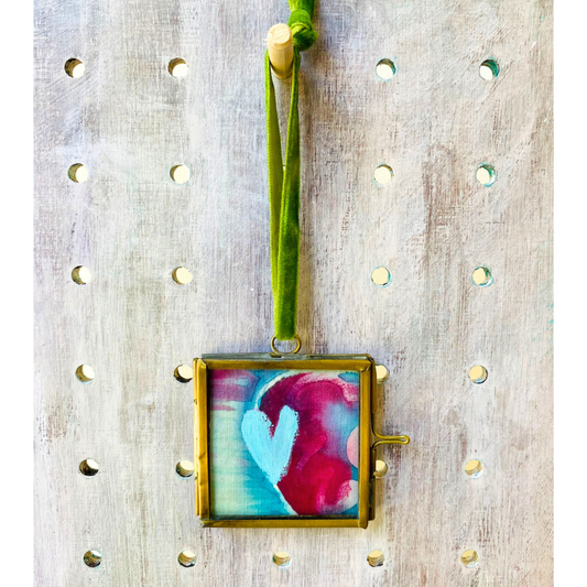 Hanging Heart Mini Frame - Blue Heart with Red Multi