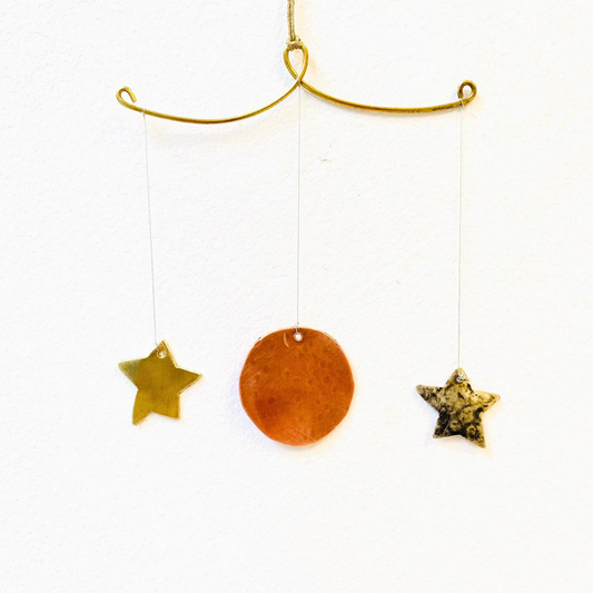 Handcrafted Lunar Metal Mobile - Copper Half Moon with two Copper Stars