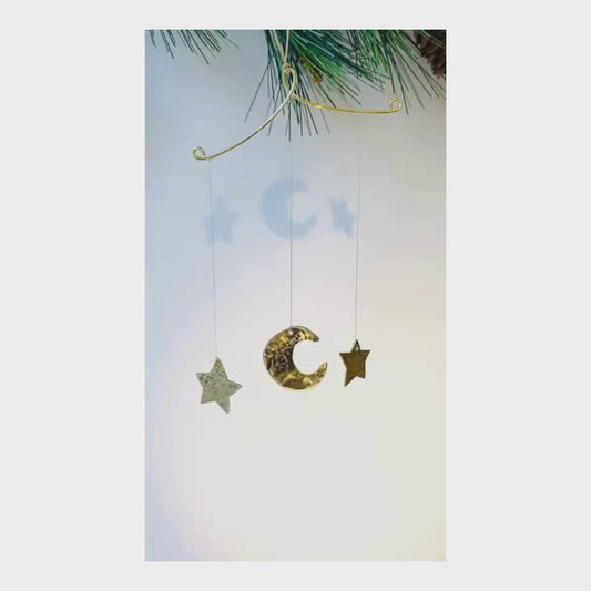 Handcrafted Lunar Metal Mobile - Nickel Silver Half Moon and Stars