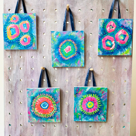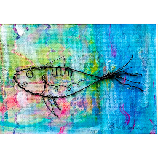This collection brings together abstract acrylic paintings, Framed wire fish and hand-painted clocks and tiny paintings of Sea Anemones, each influenced by the light, weather and open coastal spaces of Cornwall. The work reflects what it feels like to live by the sea — shifting skies, tidal movement, calm days, stormy days and everything in between.