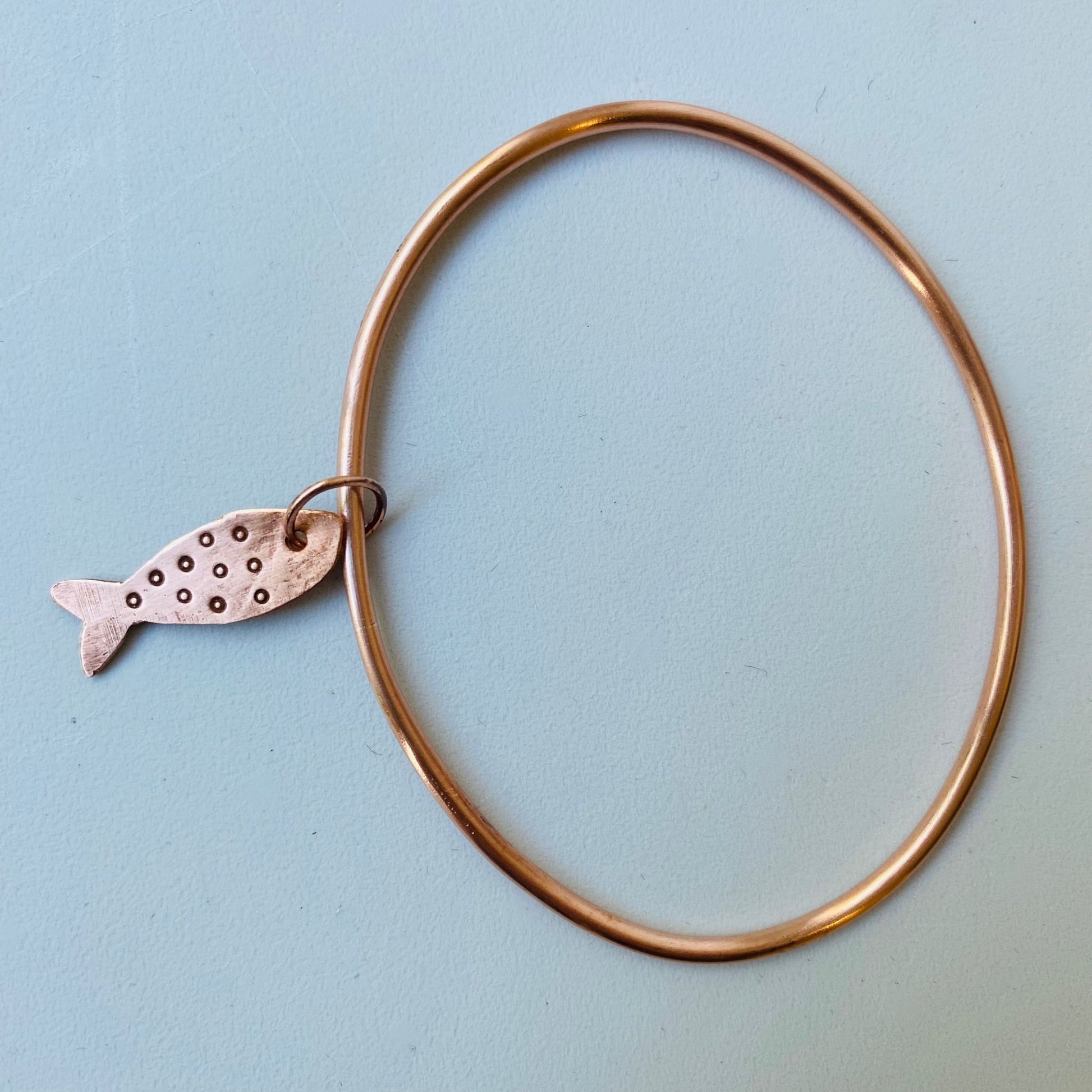 Copper Bangle with Fish Charm - Made to Order