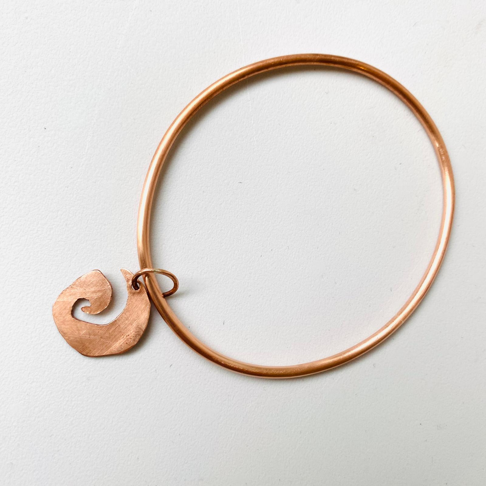 A beautiful solid copper bangle partnered with a lovely dangly Wave charm, hand-cut out of Copper.