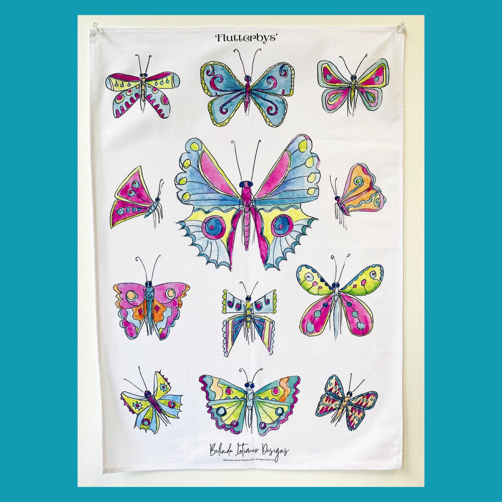 Continuing on my theme of nature in the design of my Tea-Towels, notebooks cards and prints, this wonderful and whimsical continual line drawing of my version of butterflies was made in 2024.