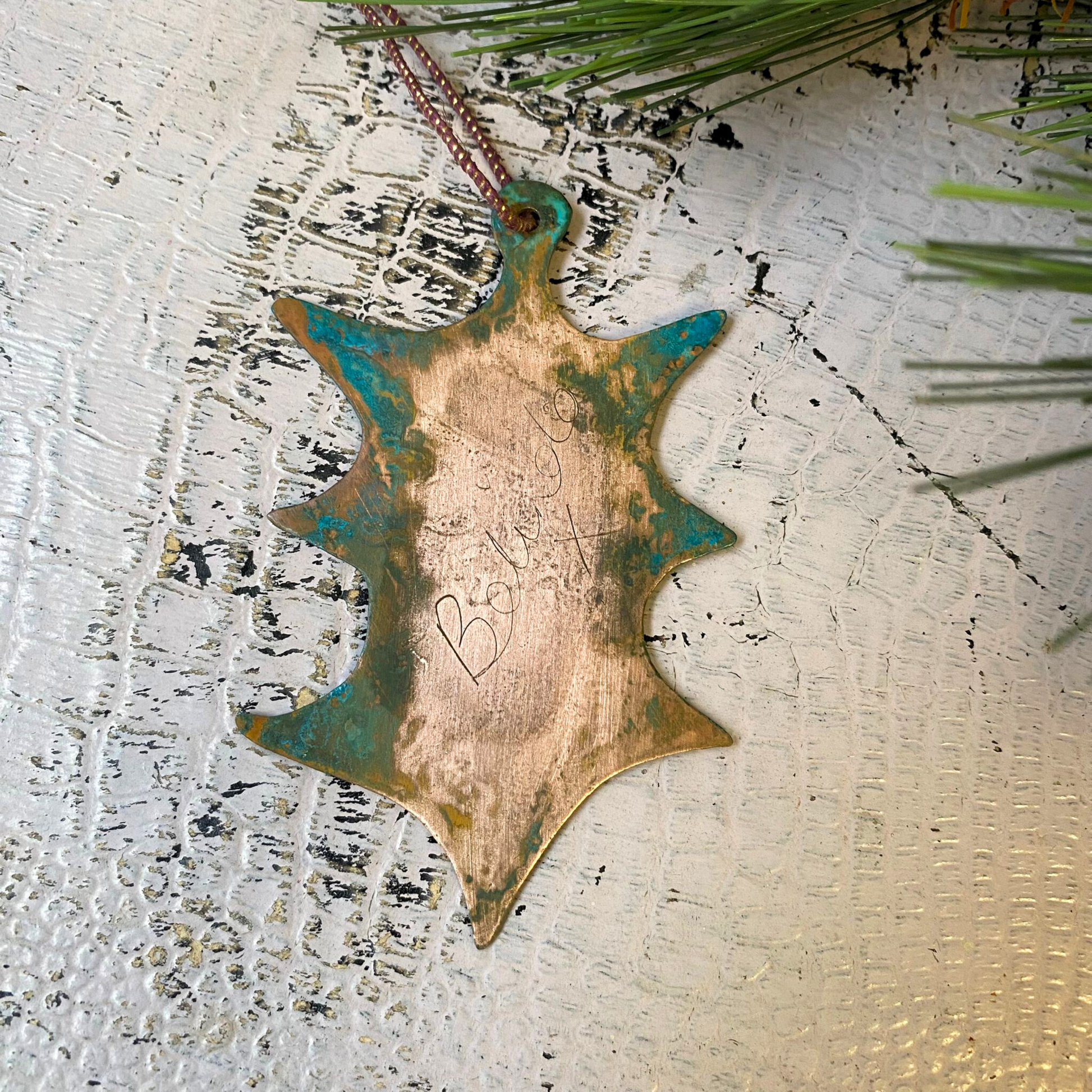 Holly Etched Copper Hanging Decoration