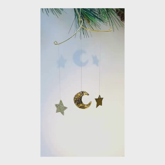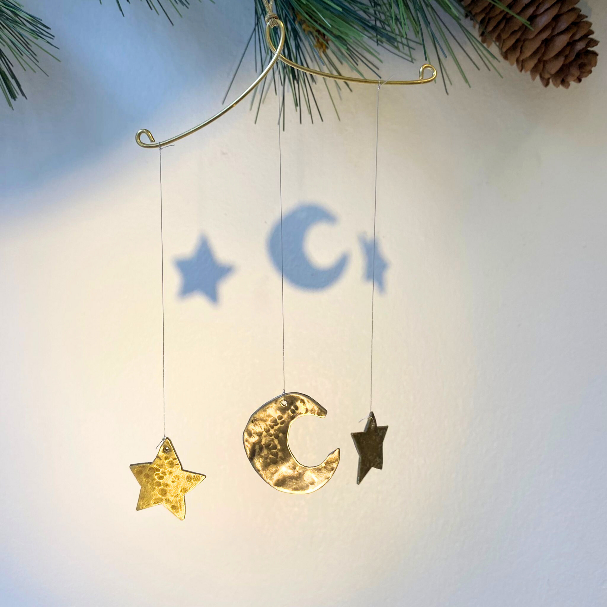 Handcrafted Lunar Metal Mobile - Nickel Half- Moon with two Brass Stars