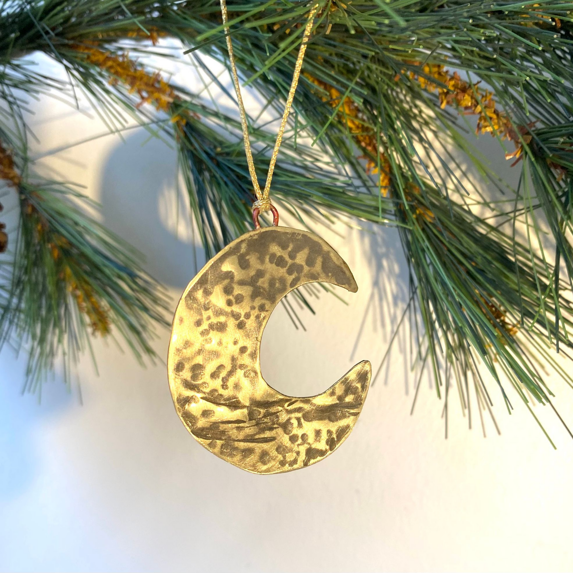 Add a touch of cosmic beauty to your home with this stunning Half Moon Hanging Decoration. Handcrafted from Nickel Silver, each piece is carefully planished to create a textured, reflective surface that shimmers beautifully in the light.