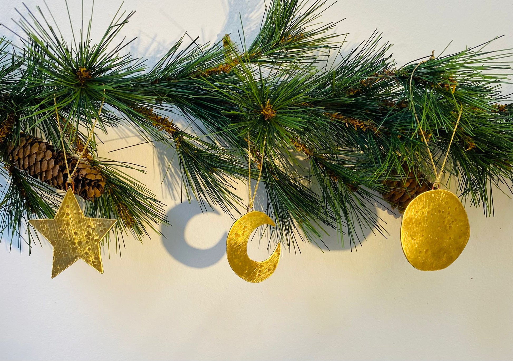 Add a touch of cosmic beauty to your home with this stunning Star Hanging Decorations. Handcrafted from brass, each piece is carefully planished to create a textured, reflective surface that shimmers beautifully in the light.