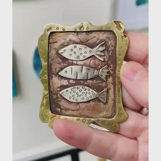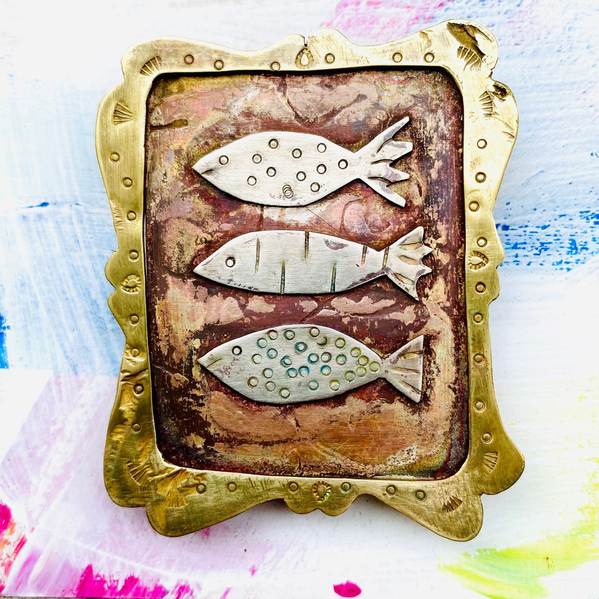 Trio of Fish Brooch – Handcrafted Statement Pin in Nickel Silver, Copper & Brass - Made to Order Item