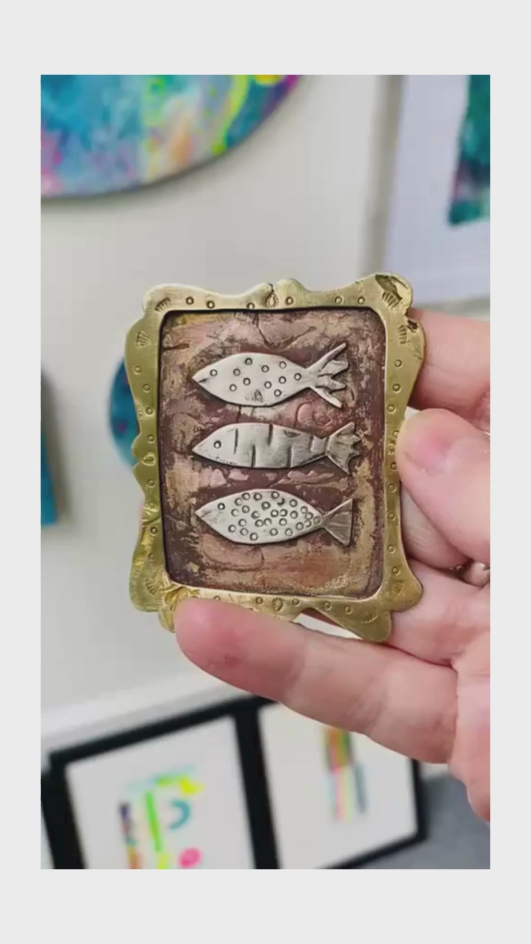 Materials: Nickel Silver (fish), Copper & Brass (frame)
